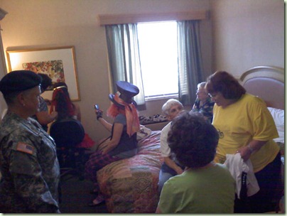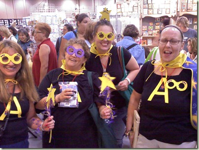 I have been sitting on this story for almost three months, and now it’s time to share it. Our friend Harriet Swindell used to live near here – several years ago she and her husband Michael moved near St. Louis. So now I see her one June weekend a year when she demos for us at a show in Collinsville, Illinois. Harriet usually drags Michael along to help with setup and teardown, and once or twice she has also drafted her friends Neal and Peggy Wade.
