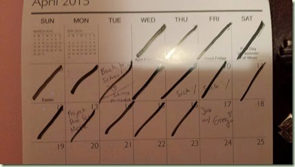 Her calendar told it all. And she was pretty excited about bouncing down the road in the passenger seat of our truck.