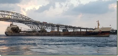 This was my first view of the bridge – it is huge, metal, and loud. The little building underneath is a museum – apparently Thomas Edison lived here as a boy and rode the train from Port Huron to Detroit every day selling newspapers. Over time, he got so good at it that he hired two other youngsters to sell papers on other trains – and this is how he earned the money to do his first experiments.
